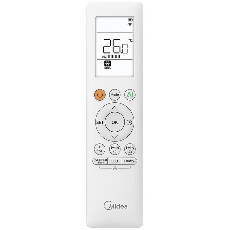 Este ar condicionado split de parede inclui a unidade interior MAG2-24N8-1, a unidade exterior MOM-24N8D0-1 e um comando à distância RG10A(B2S)/BGEF para um funcionamento simplificado. Para maior comodidade, é compatível com o controlo inteligente via Wi-Fi através de uma aplicação móvel, permitindo gerir o ar condicionado a partir do seu smartphone ou tablet. O sistema é também compatível com Alexa e Google Home (é necessário um acessório adicional Midea EU-OSK105), oferecendo um controlo total do sistema através de comandos de voz.