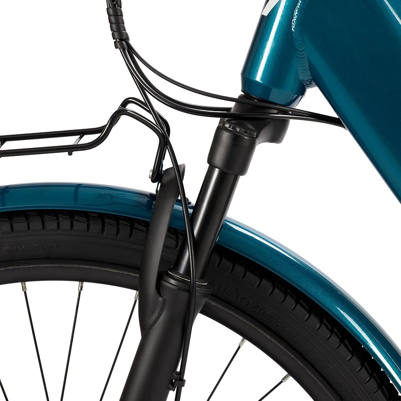 A bicicleta elétrica com assistência ao pedal perfeita para a cidade, graças aos seus pneus 28" x 1,75", luzes LED e travões de disco mecânicos dianteiros e traseiros.