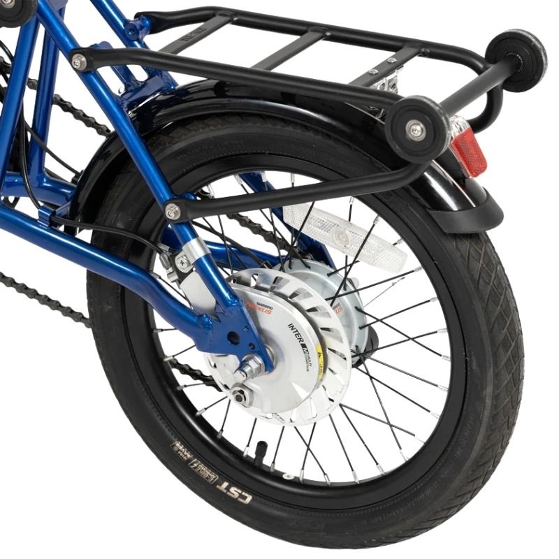 As suas rodas dianteira e traseira medem 16 polegadas, um tamanho que oferece um bom equilíbrio entre manobrabilidade e estabilidade, ideal para andar em estradas e caminhos pavimentados. A bicicleta oferece uma autonomia máxima de até 45 km por carga, sendo adequada para deslocações diárias sem recargas frequentes, promovendo uma utilização sustentável e económica. Além disso, foi concebida para ser compatível com as tomadas europeias standard (ficha EU), facilitando a recarga em qualquer posto de carregamento doméstico ou público.