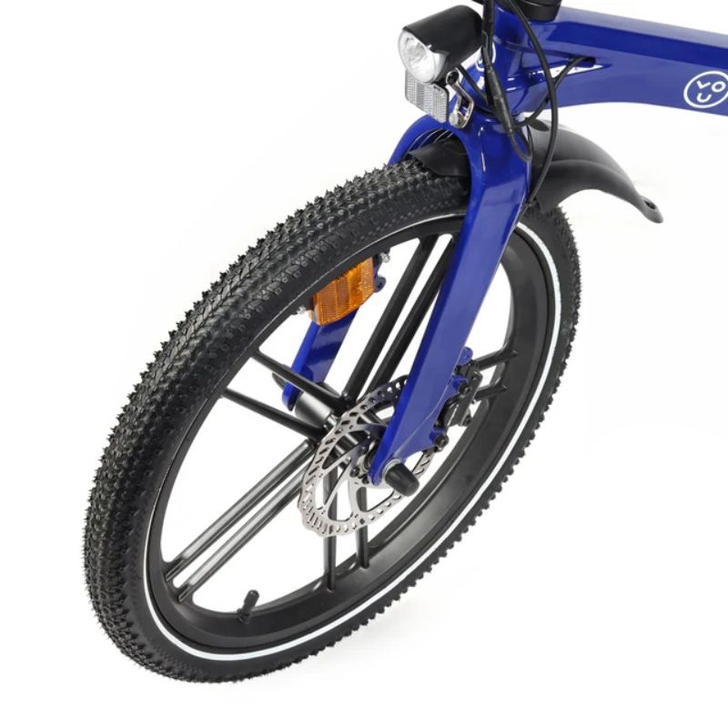 Possui jantes de 20 polegadas que combinam agilidade e estabilidade, adequadas para uma condução segura em ruas e ciclovias. A bicicleta oferece uma autonomia de aproximadamente 40 km por carga, proporcionando um alcance suficiente para deslocações diárias sem necessidade de recargas frequentes. A sua cor azul oferece um acabamento atraente e moderno, e a bicicleta foi concebida para suportar uma utilização regular em ambientes urbanos.