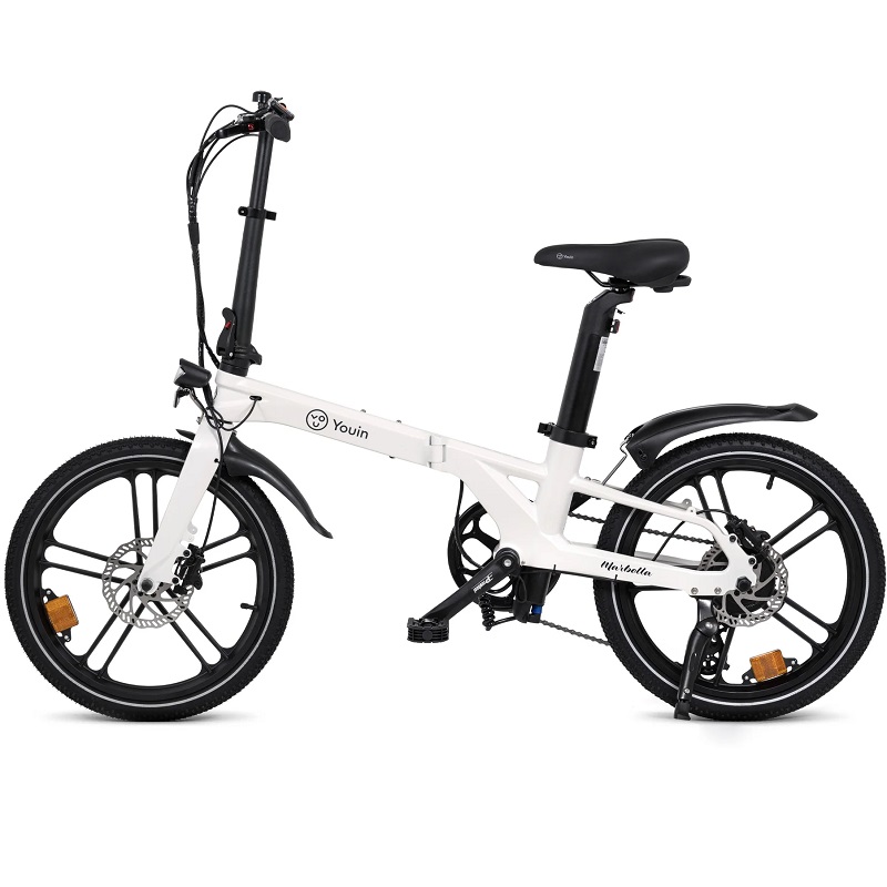A bicicleta elétrica Youin BK1350C MARBELLA foi concebida para uma mobilidade urbana prática e eficiente, combinando funcionalidade e conforto num formato compacto. Este veículo elétrico destaca-se pelo seu design dobrável, facilitando o transporte e a arrumação em espaços pequenos, ideal para quem procura uma solução versátil para a mobilidade urbana. Equipada com um motor de 250W, atinge uma velocidade máxima de 25 km/h, garantindo deslocações rápidas e convenientes para o dia-a-dia na cidade.