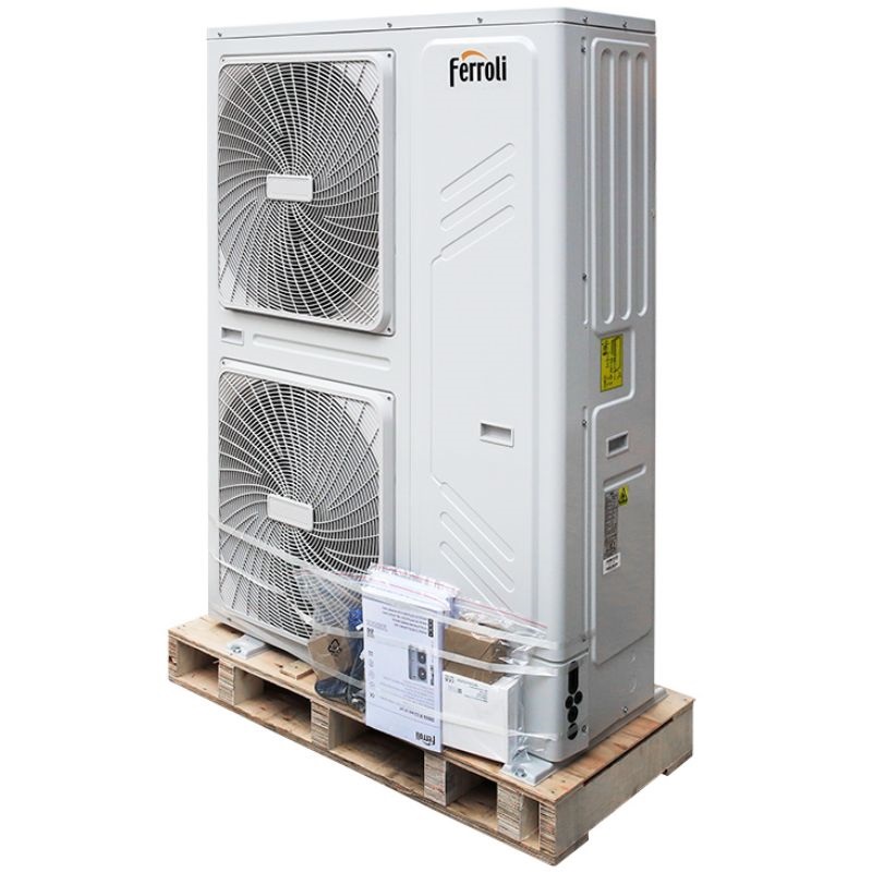As bombas de calor aerotérmicas Ferroli são concebidas para fornecer arrefecimento no verão, aquecimento no inverno e/ou produção de água quente sanitária durante todo o ano. Esta bomba de calor de última geração, equipada com tecnologia Inverter e utilizando o refrigerante ecológico R32,