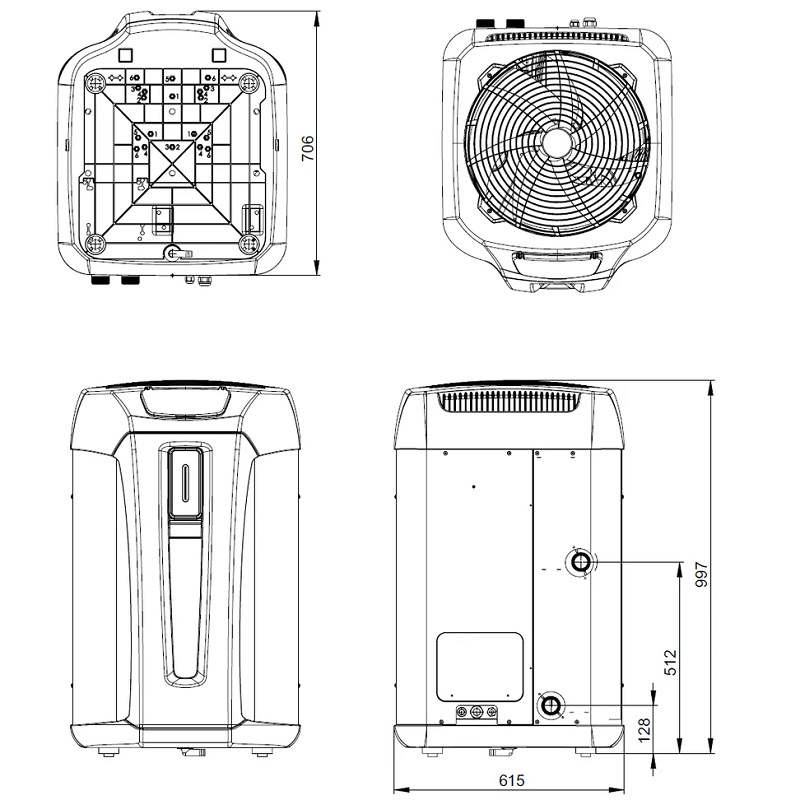 Bomba de calor exterior monobloco ar/água com controlador de display digital