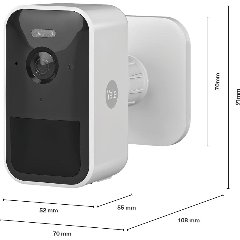 A Yale SV-OC-1A-W é uma câmara IP de exterior concebida para videovigilância em ambientes residenciais e comerciais que exigem uma monitorização fiável 24 horas por dia, 7 dias por semana. Fabricada com uma combinação robusta de metal e plástico, esta câmara apresenta um design em forma de cubo com acabamento em preto e branco, permitindo uma integração fácil e estética em fachadas e espaços exteriores. Oferece uma resolução Full HD 1080p, garantindo imagens nítidas e detalhadas de dia e de noite graças ao seu sistema de visão noturna, que aumenta a segurança em condições de pouca luz.