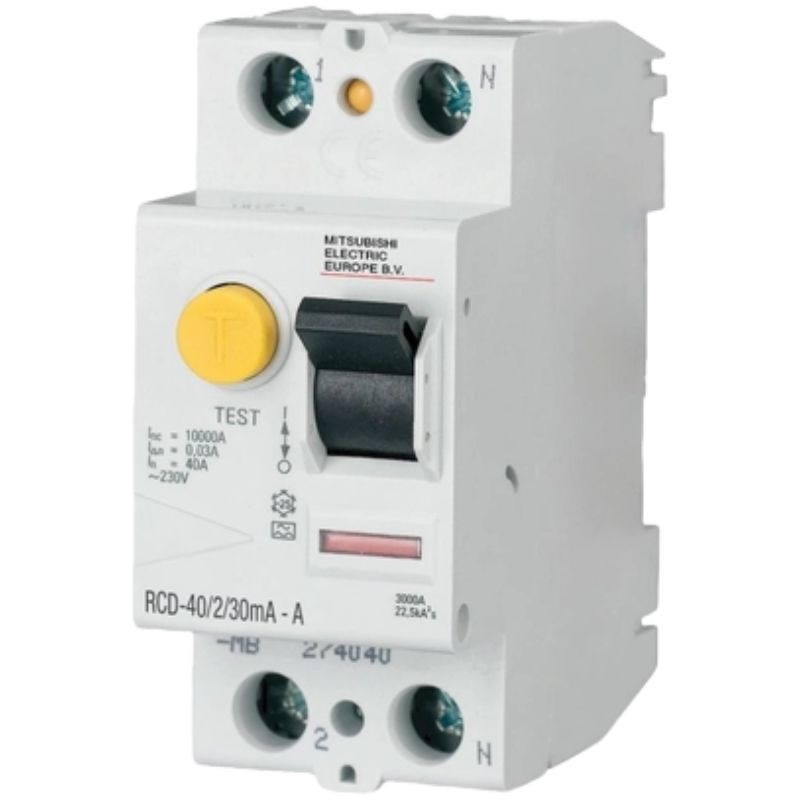 Disjuntor Diferencial Residual (DDR) Mitsubishi 2P 63A 300mA Tipo A. Elevada imunidade.