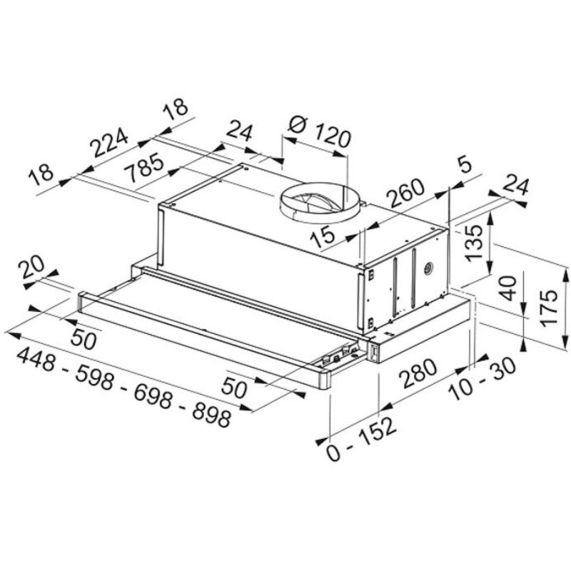 Exaustor de Cozinha Embutido Mepamsa Superline GLAS 60cm. 380 m³/h