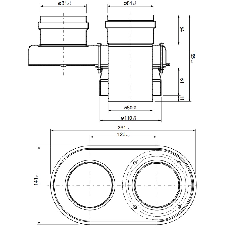 Adaptador coaxial para saída de caldeira de duplo caudal compatível com os esquentadores Junkers