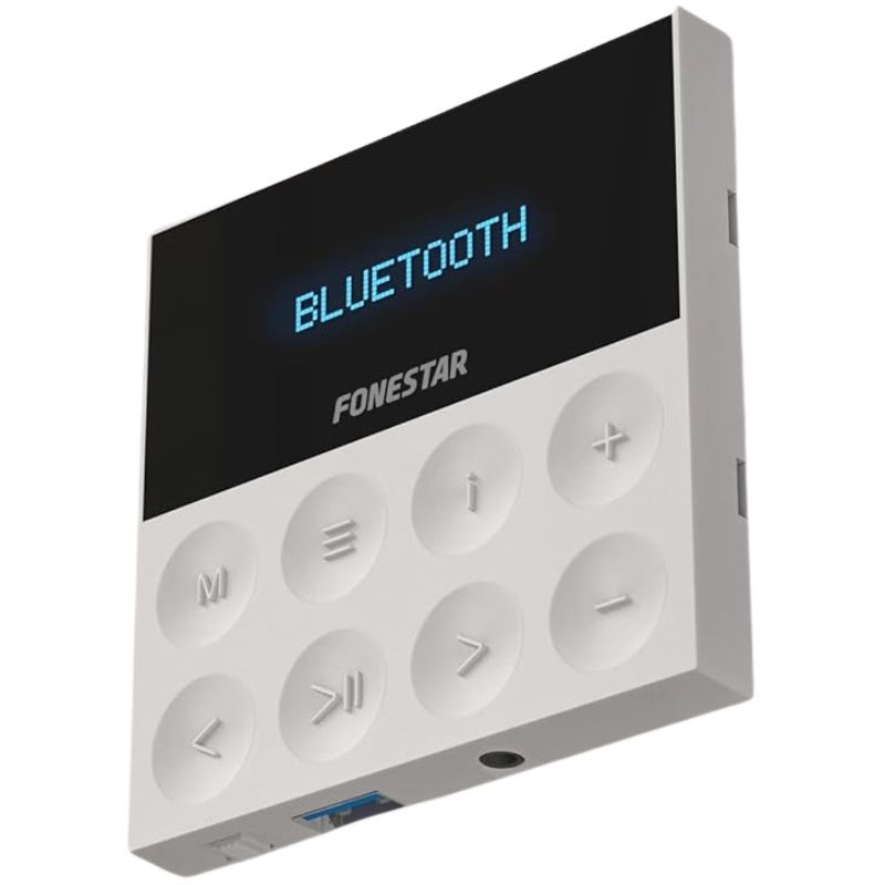 O Fonestar KS-WALL é um sistema de áudio completo composto por duas colunas de teto e um amplificador de parede. Com as suas diversas opções de reprodução, como Bluetooth/USB, sintonizador FM com 50 estações predefinidas e duas entradas auxiliares, alarga as suas possibilidades de audição e permite-lhe desfrutar de música transmitida a partir de qualquer dispositivo com saída de linha.