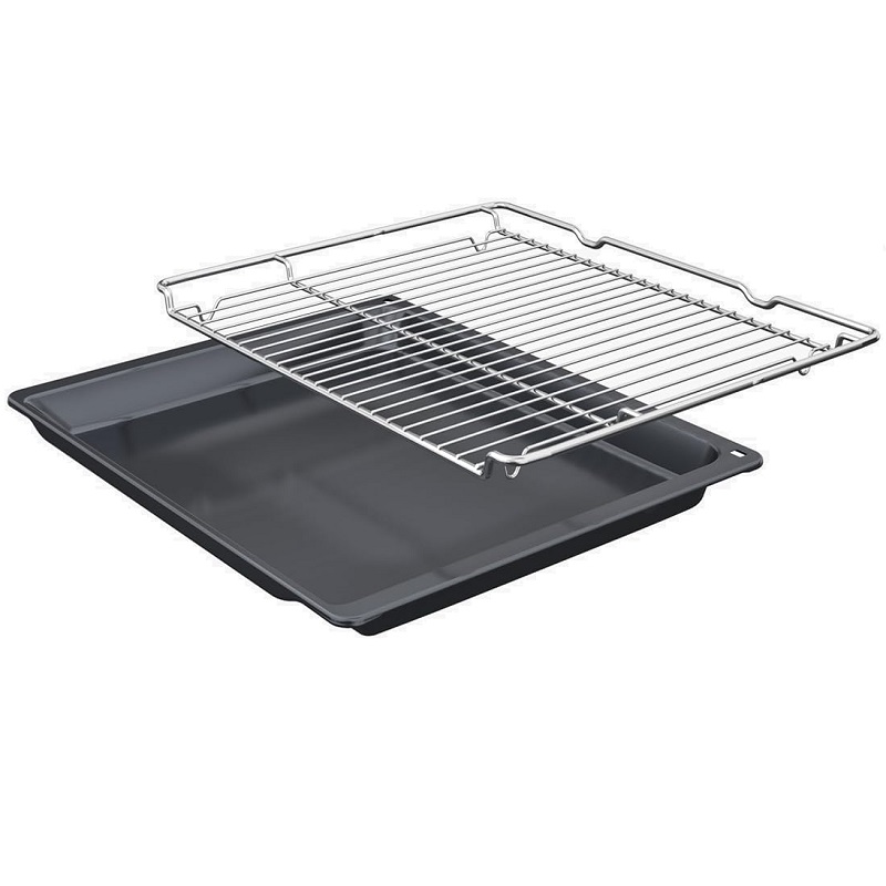 A tecnologia de convecção assistida por ventilador garante uma distribuição uniforme do calor para resultados consistentes a todos os níveis. Com uma capacidade de 71 litros, a cavidade única acomoda facilmente as refeições da família. O forno de encastrar de 59,5 × 59,4 × 55 cm adapta-se a armários altos padrão e outros móveis, com uma profundidade de instalação de 55 cm para colocação direta. O carril telescópico facilita a inserção e remoção de pratos, minimizando o risco de contacto com superfícies quentes. A iluminação interior melhora a visibilidade durante a cozedura e evita a abertura desnecessária da porta.
