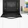 A porta basculante oferece uma superfície conveniente para panelas pesadas. Um fecho de segurança infantil aumenta a segurança durante a preparação dos alimentos. O consumo de energia é de 0,69 kWh no modo com ventilador e de 0,94 kWh no modo convencional, permitindo uma gestão transparente da energia com base nas suas receitas. O forno não está ligado a um sistema de domótica, garantindo o funcionamento direto pelos controlos frontais. A ausência de um termómetro alimentar e de um espeto rotativo simplifica a interface para a preparação de refeições do dia-a-dia e para receitas repetidas.