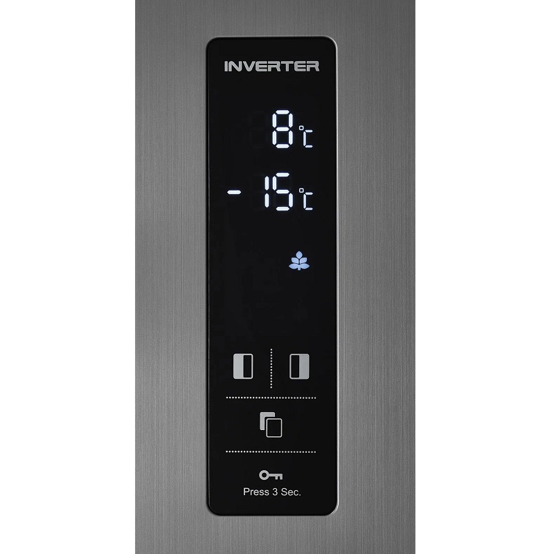 3 compartimentos na porta com acabamento em aço inoxidável