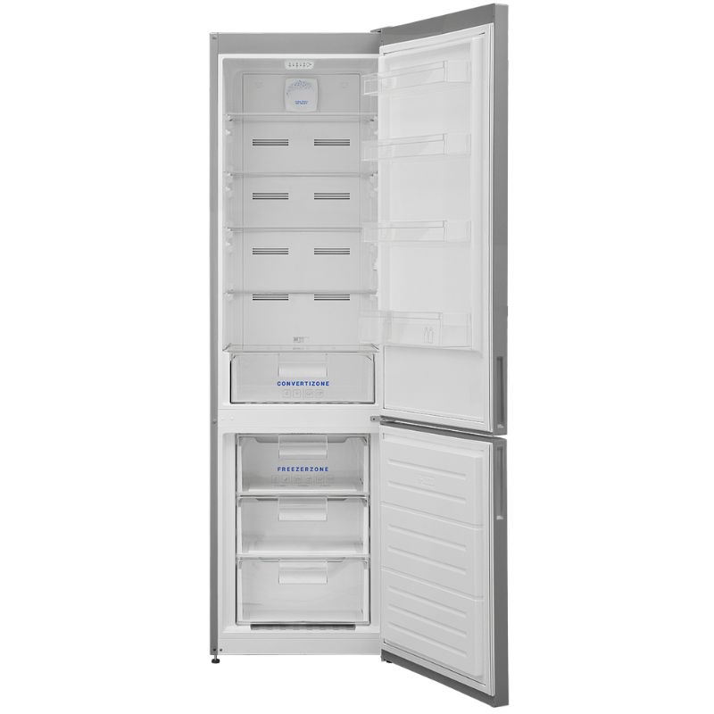 Este frigorífico combinado de instalação livre possui um acabamento em aço inoxidável e tecnologia No Frost para evitar a formação de gelo. Está equipado com um compressor e um termóstato eletrónico para um funcionamento estável. Oferece uma capacidade líquida de 239 litros para o frigorífico e 88 litros para o congelador, para uma capacidade total de 327 litros. Inclui um compartimento convertível e sistema Fresh Air Flow para uma melhor circulação do ar, bem como uma porta reversível e uma profundidade reduzida de 60 cm para facilitar a instalação em espaços pequenos. Nível de ruído: 39 dB.
