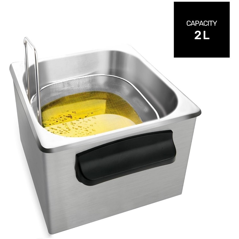 Esta fritadeira de 2 litros e 1700W é ideal para fritar até 600g de batatas. Possui um sistema de filtragem de óleo, controlo de temperatura ajustável e um elemento de aquecimento totalmente submerso para resultados sempre deliciosos. O seu design seguro inclui sistema de elevação do cesto, base antiderrapante e luz indicadora. Fabricada com depósito e corpo em aço inoxidável, é totalmente desmontável para facilitar a limpeza. Perfeita para cozinhar em casa de forma eficiente e higiénica.