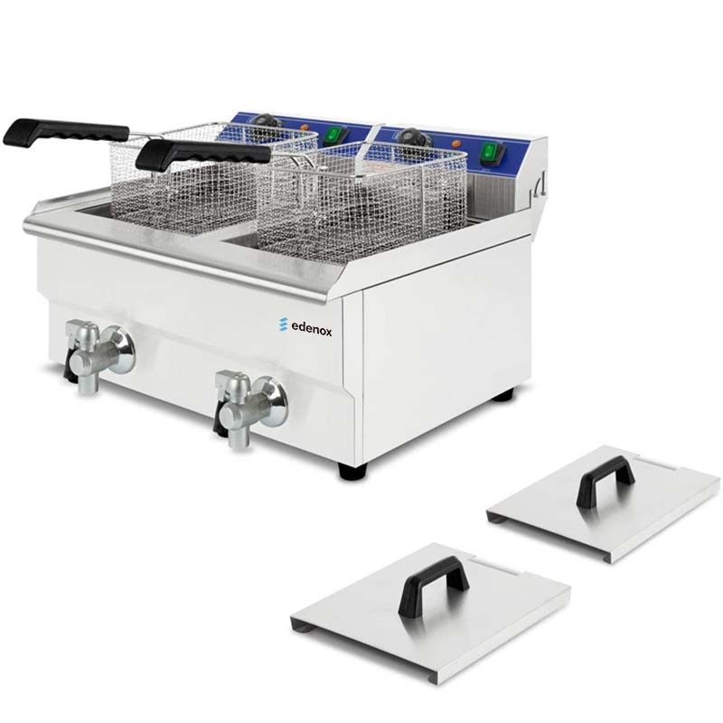 Fritadeira Industrial Edenox TF-10-D S1 10L x 2 com Torneira, Aço Inoxidável, 2 x 4500W