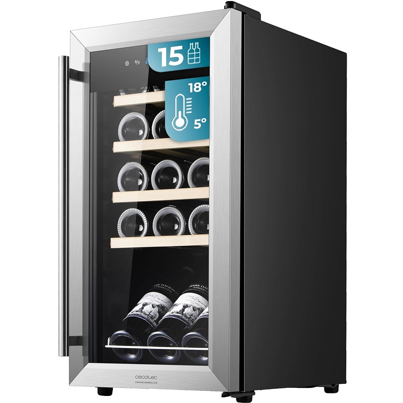 Garrafeira Cecotec Bolero GrandSommelier 1550 em Aço Inoxidável, Capacidade para 15 Garrafas