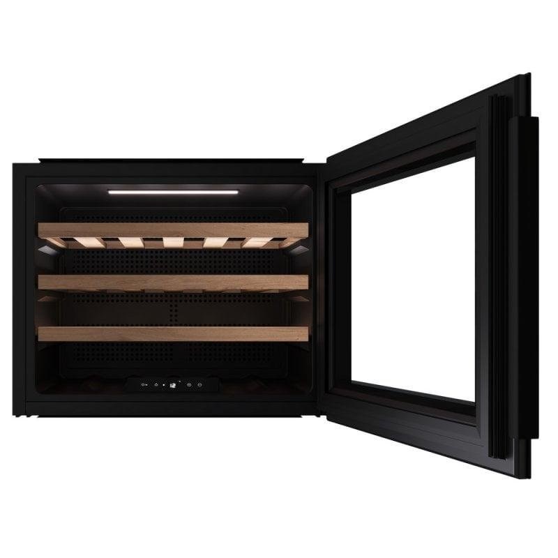 A garrafeira possui uma porta de vidro duplo fumado que bloqueia a luz e os raios UV que podem danificar o vinho. O sistema antivibração reduz o movimento interno, prevenindo a "fadiga do vinho" e preservando os seus aromas.