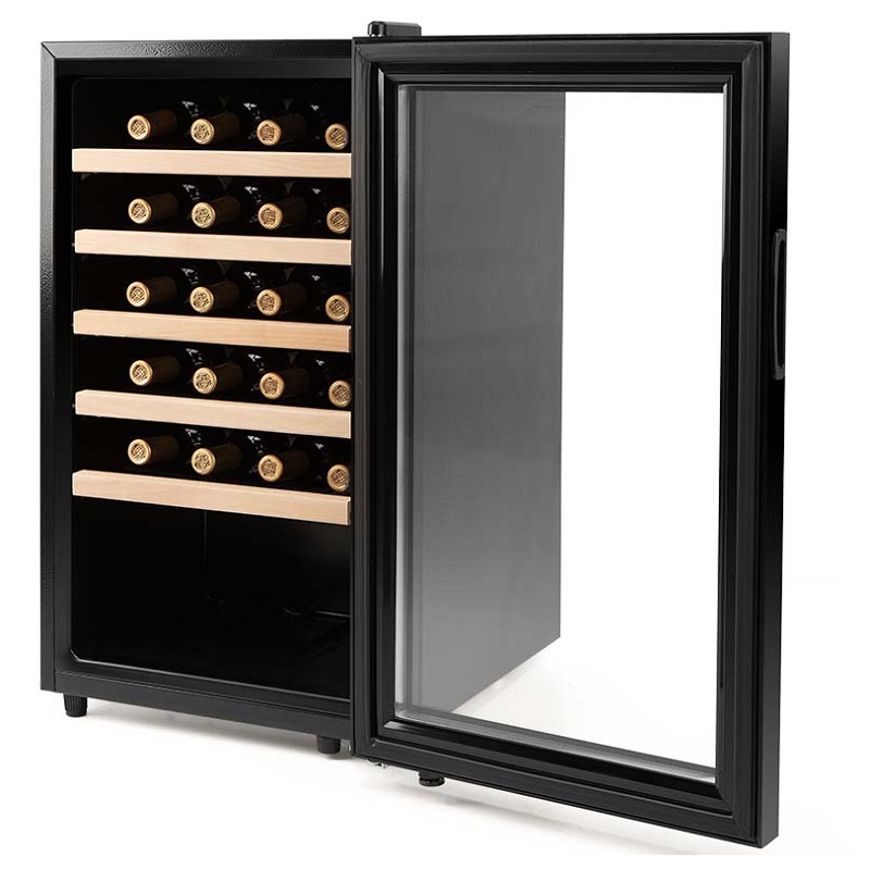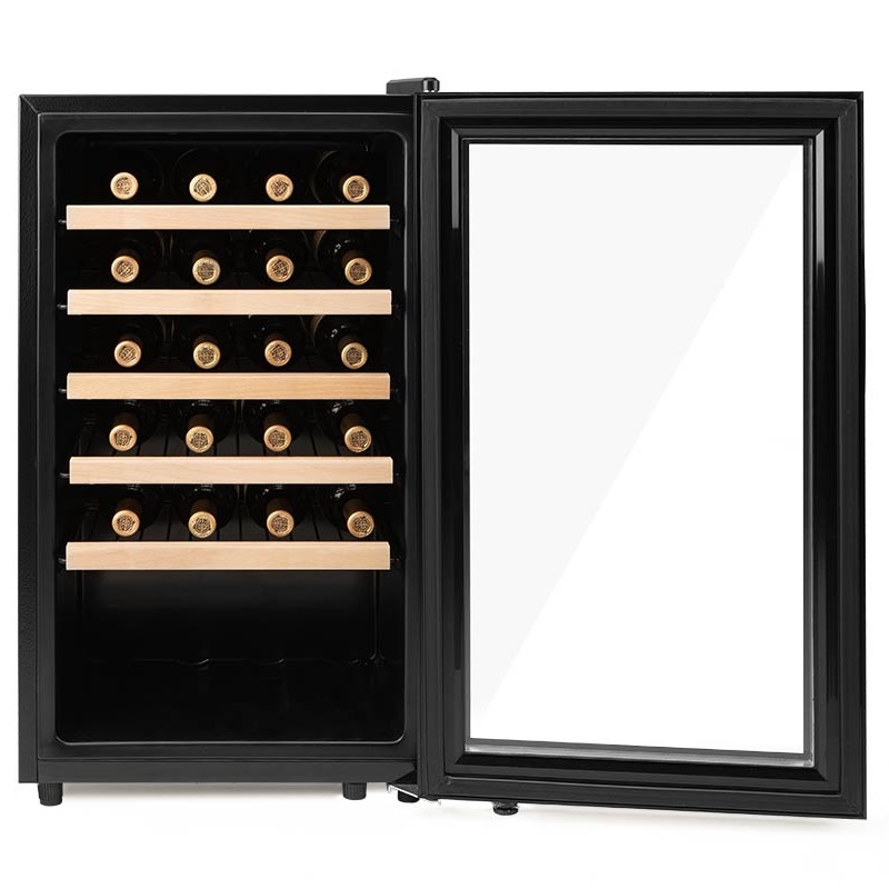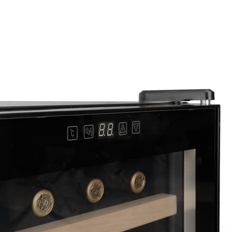 Graças ao seu sistema de refrigeração por compressor, a adega garante um arrefecimento rápido e estável, independentemente da temperatura ambiente. Ao contrário de outros sistemas, o compressor assegura um caudal constante, ideal para vinhos tintos, brancos ou espumantes. Além disso, o seu termóstato eletrónico permite um controlo preciso da temperatura entre 5°C e 20°C, sendo a temperatura apresentada em °C e °F no seu ecrã LCD digital e painel tátil intuitivo.