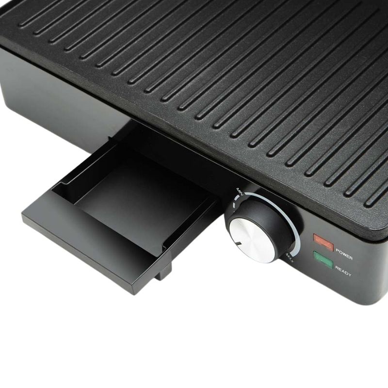 Com uma superfície de cozedura de 23 x 14,5 cm por placa, terá um amplo espaço para as suas refeições diárias. Para facilitar a limpeza, dispõe de um prático tabuleiro de recolha de gorduras que recolhe os sumos e gorduras, simplificando a manutenção e mantendo a sua bancada limpa.