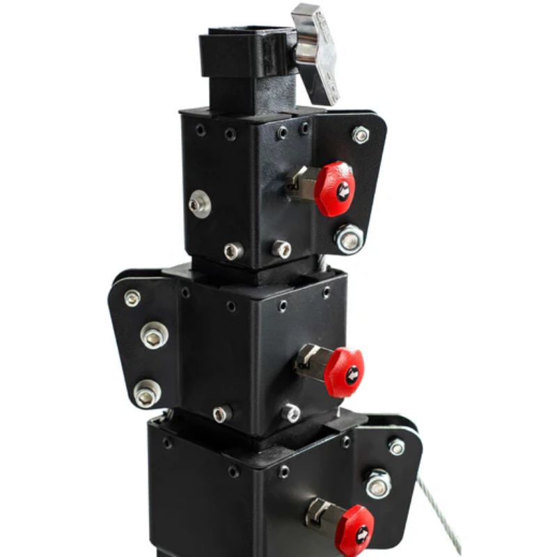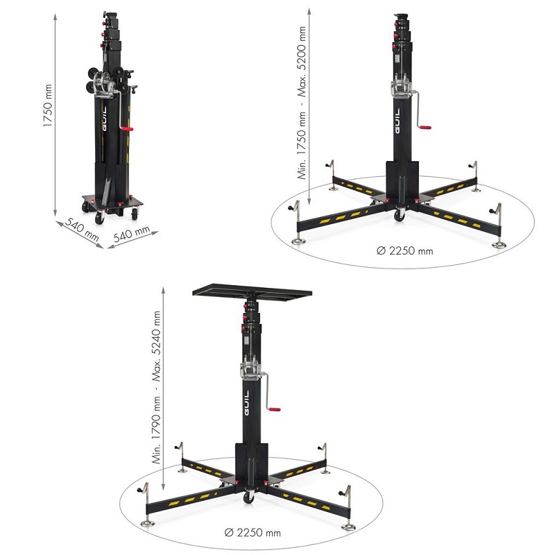 Este equipamento pode ser utilizado tanto em ambientes interiores como exteriores e é adequado para instalações industriais, comerciais ou residenciais. O guincho para carga é composto por três secções telescópicas de aço com revestimento em pó preto e propriedades especiais de resistência aos riscos. Isto, aliado ao facto de todos os componentes serem fabricados em aço inoxidável, torna o guincho ideal para utilização no exterior e garante a máxima resistência à corrosão.