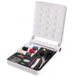 Várias funções de costura, 34 pontos integrados, ponto reto, pontos em ziguezague, ponto cego, ponto acetinado decorativo e muito mais, equipado com casa de botão automática de uma etapa, bobina de metal com carregamento frontal, cortador de linha integrado, enfiador automático, ponto ajustável comprimento, costura reversa, costura em alta velocidade (750 pts/min) e muito mais