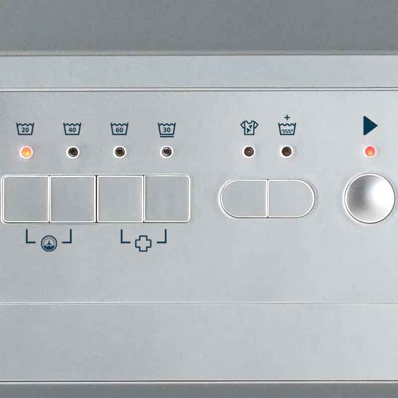 Botões de fácil seleção para escolher o programa e a opção adequados. Ruído reduzido graças ao sistema de absorção de impacto: menos de 62 dB durante o ciclo de lavagem