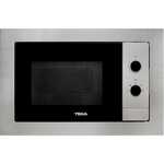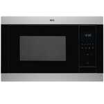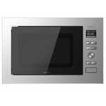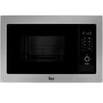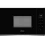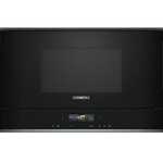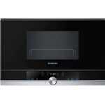 O micro-ondas de embutir Siemens BE634RGS1 tem potência máxima de 900 W e capacidade líquida de 21 litros, integrando painel de controle com tela TFT colorida de 2,8” que exibe texto e possui botões laterais sensíveis ao toque.