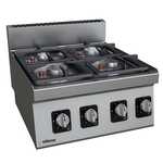 Queimador de design Arilex com saída de chama em todo o seu perímetro garantindo uma distribuição uniforme do calor por toda a placa, sem “zonas frias”, elevado poder calorífico com termopar de segurança.