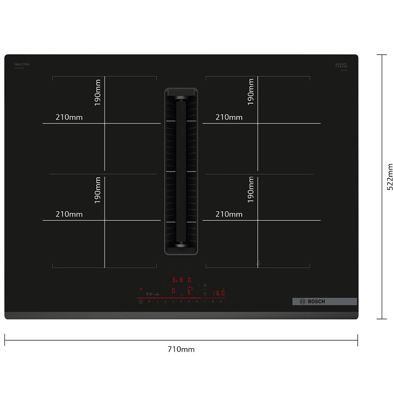 Placa de indução Bosch PVQ731H26E, 70 cm. 595 m³/h. 4 zonas de confeção.