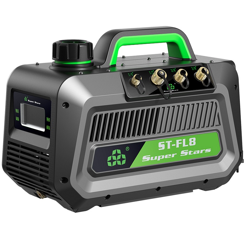 A bomba de vácuo refrigerada a ar ST-FL utiliza tecnologia de ponta para oferecer um desempenho superior. Concebido para aplicações de refrigeração e ar condicionado, é compatível com refrigerantes como R32, R410A, R134A, R454C, R455A, etc. Está equipado com quatro portas de entrada de 1/4", 1/2" e duas de 3/8", bem como um amplo visor de nível para evitar a falta de óleo e garantir recargas rápidas. O seu ventilador omnidirecional mantém a eficiência da bomba, protegendo eficazmente o desempenho da máquina.