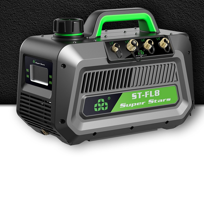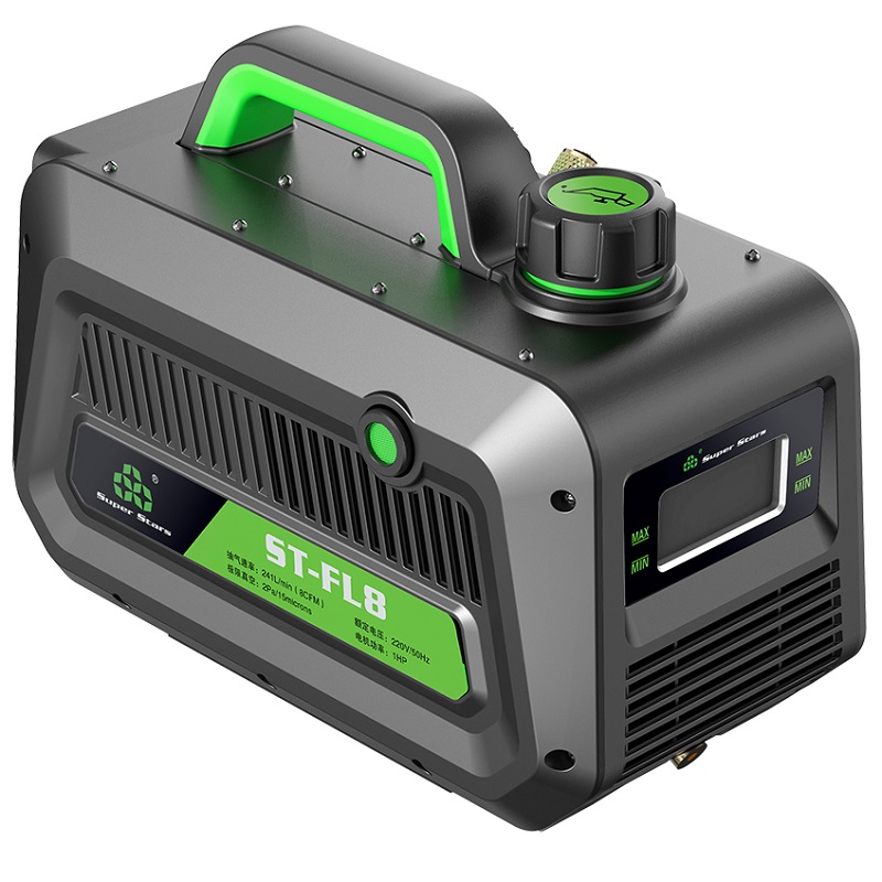 A bomba de vácuo refrigerada a ar ST-FL utiliza tecnologia de ponta para oferecer um desempenho superior. Concebido para aplicações de refrigeração e ar condicionado, é compatível com refrigerantes como R32, R410A, R134A, R454C, R455A, etc. Está equipado com quatro portas de entrada de 1/4", 1/2" e duas de 3/8", bem como um amplo visor de nível para evitar a falta de óleo e garantir recargas rápidas. O seu ventilador omnidirecional mantém a eficiência da bomba, protegendo eficazmente o desempenho da máquina.