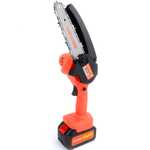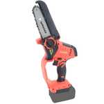 Na prática, a corrente é protegida por uma tampa e a motosserra é fixada por um sistema de balancim muito seguro.
