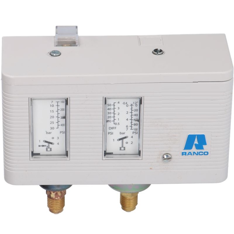 O pressostato Ranco 017H4705 é um regulador de pressão dupla concebido para sistemas de refrigeração e ar condicionado, oferecendo proteção contra pressões baixas (BP) e altas (AP).