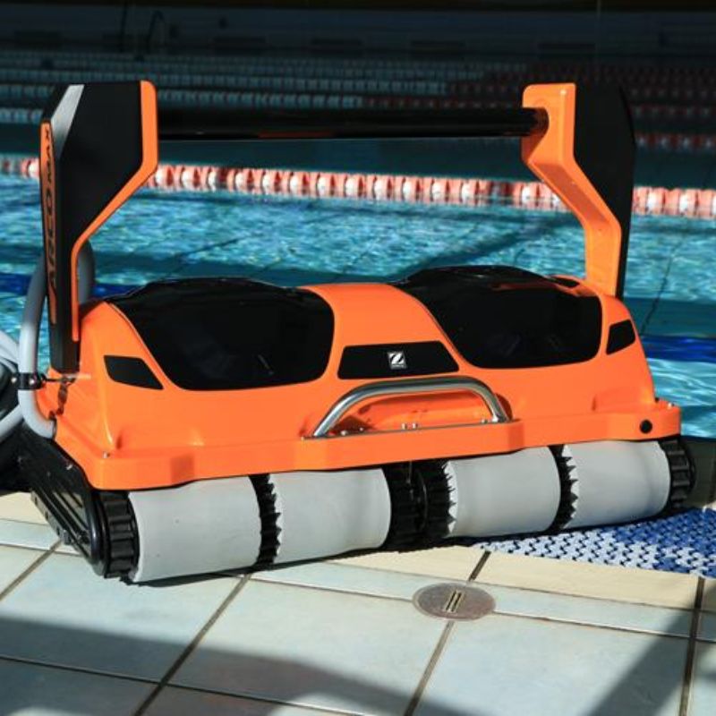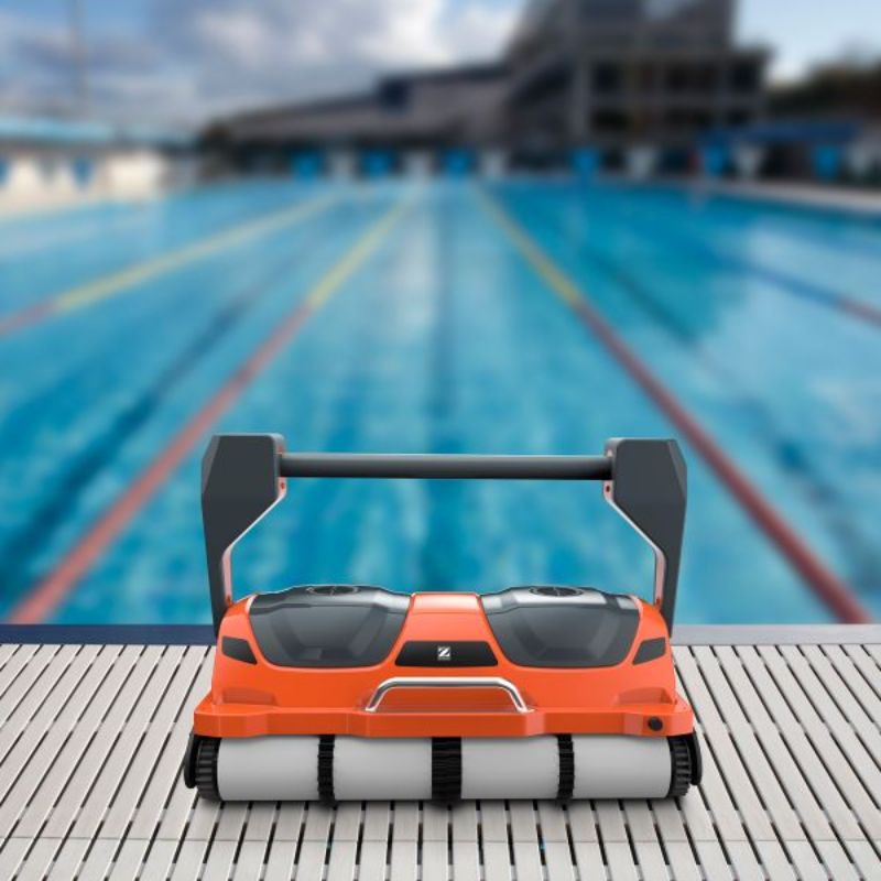Para piscinas públicas de média e grande dimensão (centros aquáticos, complexos desportivos, piscinas municipais) com paredes rígidas, até 50 m de comprimento. O robô foi especialmente concebido para uma utilização intensiva em piscinas públicas de média dimensão com paredes rígidas. Sistema de Navegação por Sensores: limpeza inteligente e personalizada com sistema de bússola anti-emaranhamento; sem necessidade de virar o robô.