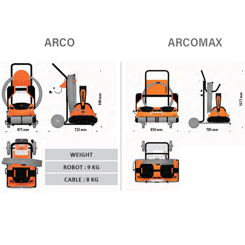 O Sistema de Navegação por Sensores™ melhora esta eficiência, otimizando o movimento do robô dentro da piscina e, consequentemente, reduzindo o tempo de limpeza. Os modelos ARCO™ e ARCOMAX, igualmente robustos e de elevado desempenho, estão equipados com sensores infravermelhos que detetam paredes e obstáculos, bem como um giroscópio e um sistema de navegação inteligente. Com múltiplos ciclos de limpeza para o fundo, paredes e linha de água, oferecem um sistema de Início Programado para agendar horários de início atrasados, bem como um Modo Turbo para maior velocidade e potência. Uma sucção ultra potente e duradoura completa este elevado nível de desempenho.
