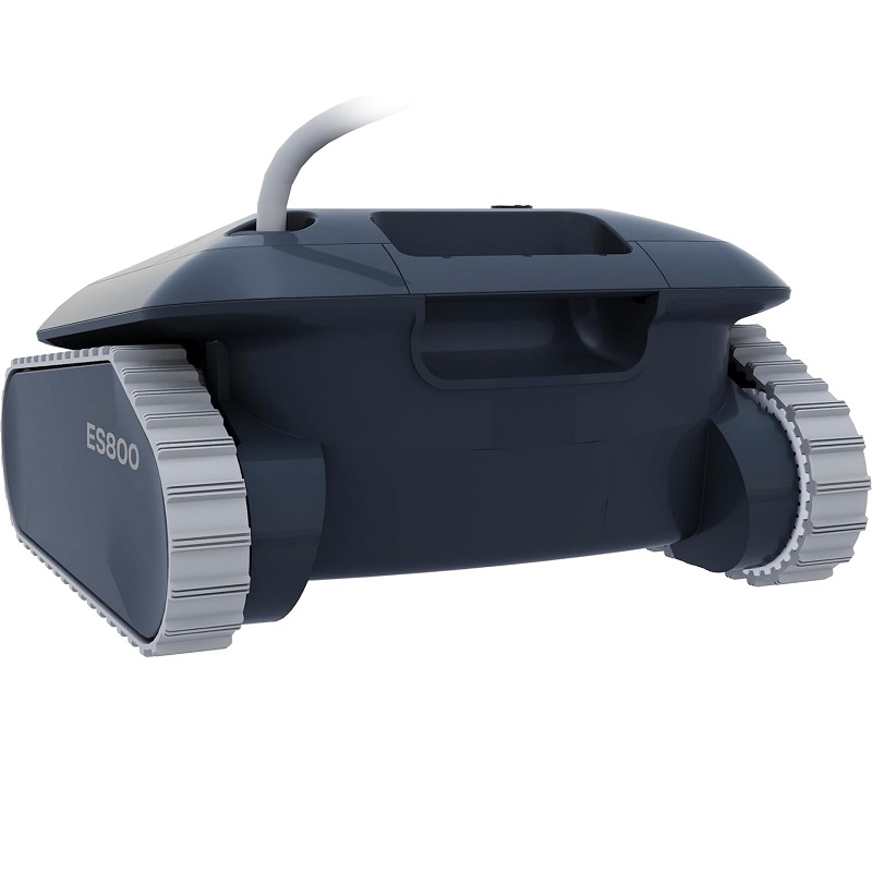 O seu funcionamento é particularmente conveniente graças ao controlo por aplicação, permitindo-lhe preparar o seu robô para piscina de forma rápida e fácil. O sistema rotativo eletrónico (Gencore 7) evita o emaranhamento do cabo e garante um funcionamento suave. Além disso, a Navegação Giroscópica Inteligente permite que o ES 800 se adapte automaticamente às características específicas da sua piscina.