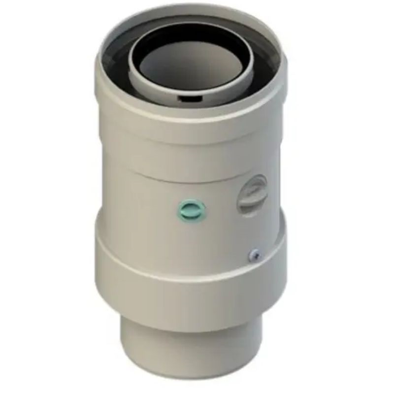 Ligação vertical 60/100 compatível com Intergas para caldeiras, fabricada em PP e aço lacado, coaxial (Ø60/Ø100). Compatível com caldeiras ACV e Intergas.