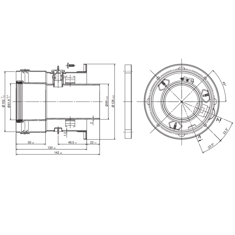 Saída Vertical FIG Ø 60/100 mm, para caldeiras de condensação. Aço/PP Branco