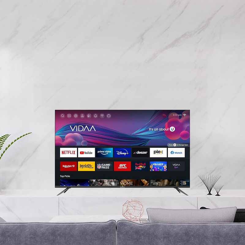 O seu sistema de áudio, composto por duas altas conversas de 10 W e a tecnologia Dolby Audio, oferece uma qualidade de imagem clara e poderosa que sublime. Equipado com o sistema de exploração VIDAA 4.1, este televisor permite-lhe aceder rapidamente a aplicações populares como Netflix, Prime Video, Disney+ e Spotify, para uma experiência de entretenimento completa.