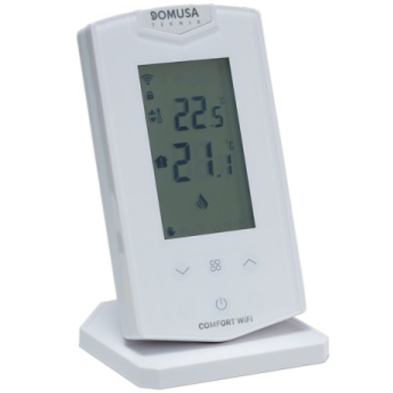 O termostato sem fios Domusa Confort WiFi, referência CELC000579, é uma solução avançada para o controlo remoto de caldeiras Domusa Teknik. Graças à sua conectividade Wi-Fi, este termóstato permite gerir a temperatura interior e o funcionamento da caldeira a partir de qualquer lugar, desde que tenha ligação à internet, utilizando um smartphone iOS ou Android compatível. Com o seu programador semanal e funcionalidades avançadas, o Domusa Confort WiFi otimiza o consumo de energia e melhora o conforto da sua casa.