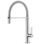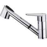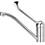 Torneira misturadora com uma alavanca para regular a temperatura e o caudal da água.