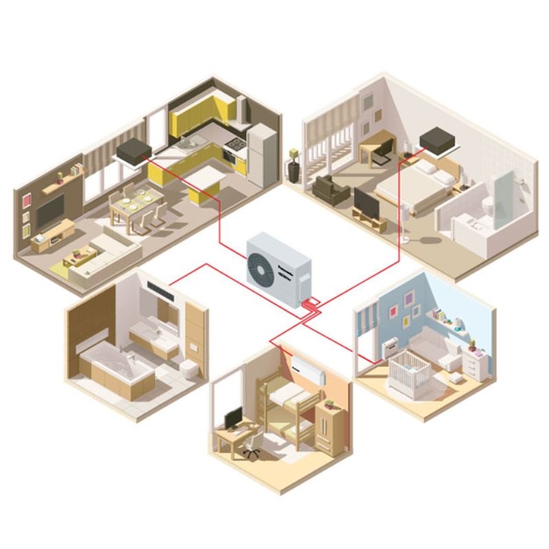 Até 5 unidades interiores com uma única unidade exterior e 5 ambientes com controlo individual