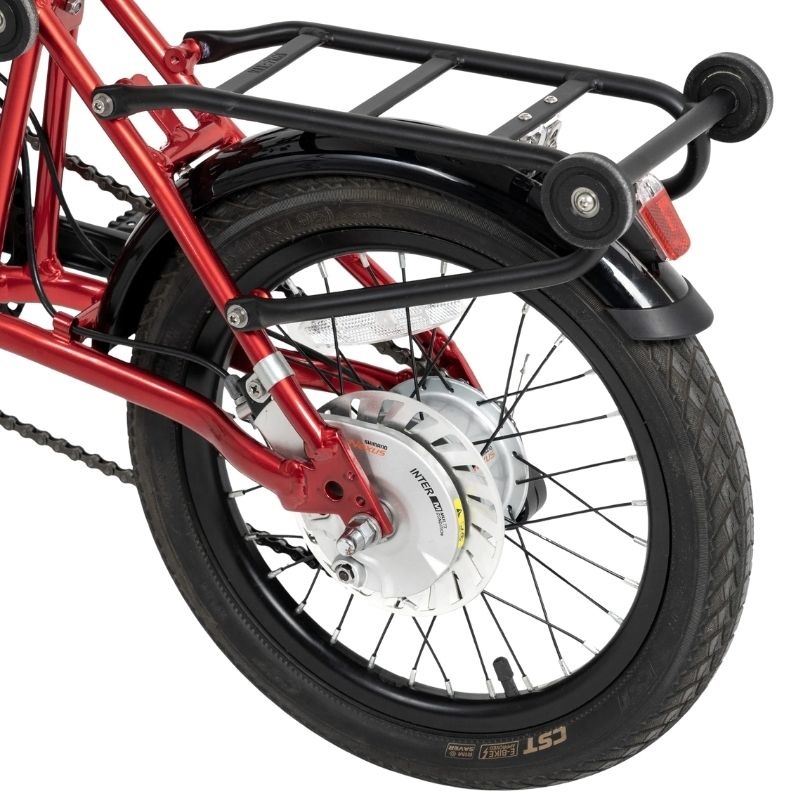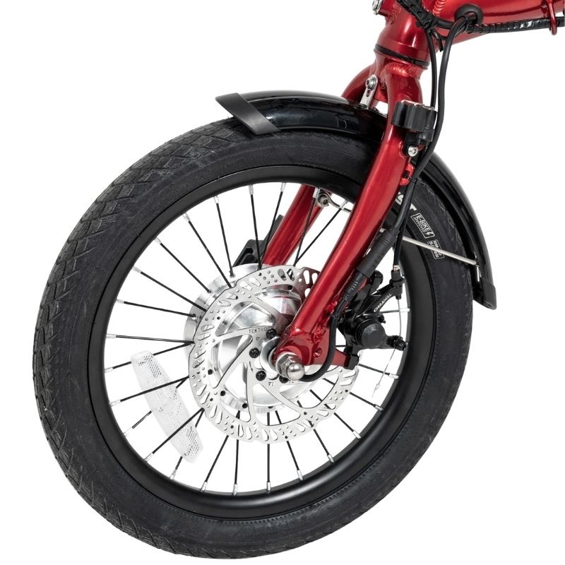 As suas rodas dianteira e traseira medem 16 polegadas, um tamanho que oferece um bom equilíbrio entre manobrabilidade e estabilidade, ideal para circular em estradas e ciclovias. A bicicleta oferece uma autonomia máxima até 45 km por carga, sendo adequada para deslocações diárias sem necessidade de recargas frequentes, promovendo uma utilização sustentável e económica. Além disso, foi concebida para ser compatível com as tomadas europeias standard (ficha EU), facilitando a recarga em qualquer posto de carregamento doméstico ou público.