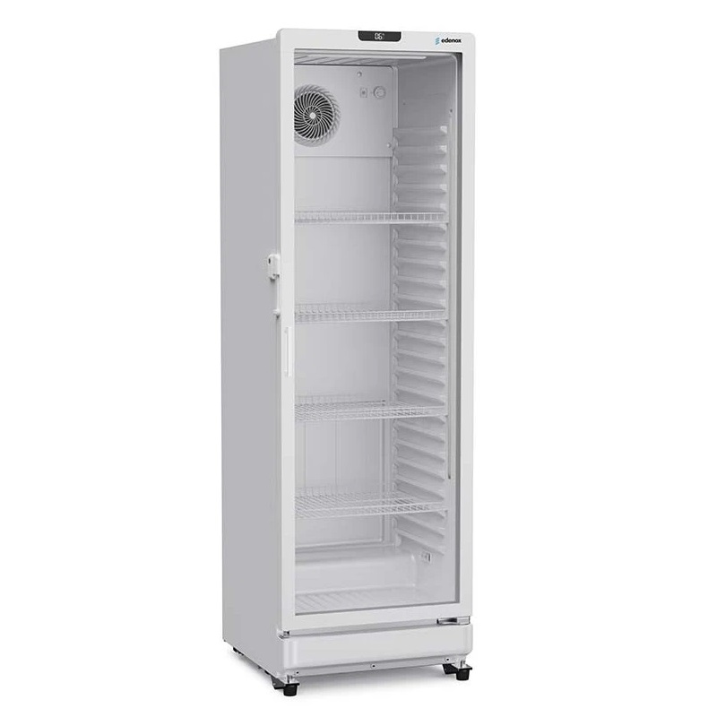 Cada vitrina está equipada com cinco prateleiras, um termómetro, um termóstato e um sistema de descongelação automático.